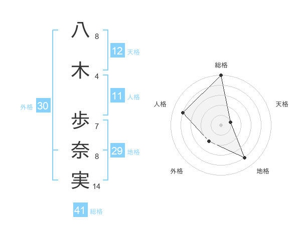 八木 歩奈実さんの総格は41画の5点!
