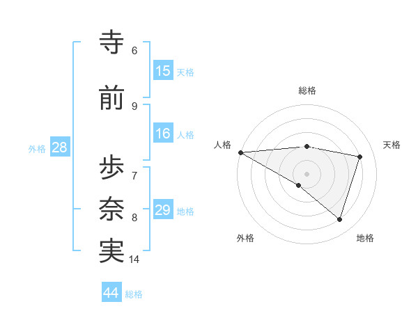 寺前 歩奈実さんを姓名の画数から五運を鑑定