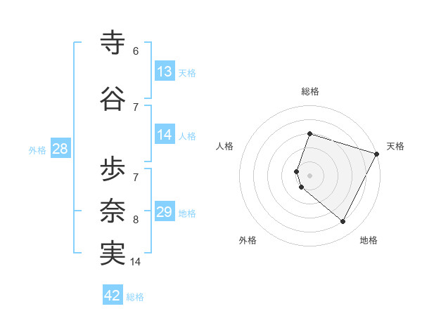 寺谷 歩奈実さんの総格は42画の3点!