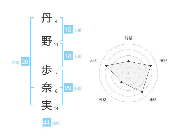 丹野 歩奈実さんを姓名の画数から五運を鑑定