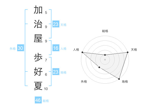 加治屋 歩好夏さんを姓名の画数から五運を鑑定
