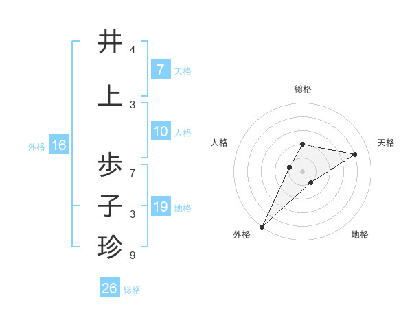 井上 歩子珍さんを姓名の画数から五運を鑑定