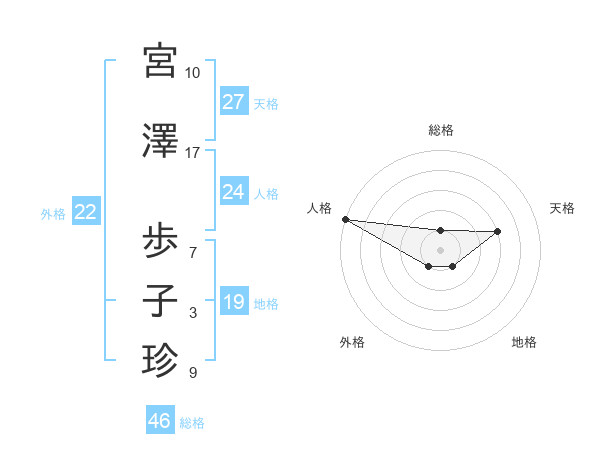 宮澤 歩子珍さんを姓名の画数から五運を鑑定
