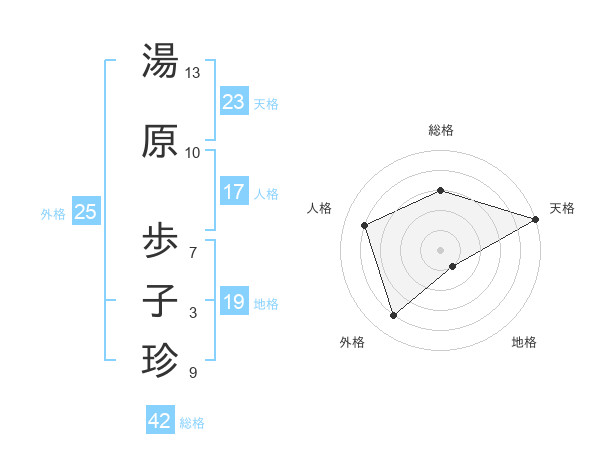 湯原 歩子珍さんを姓名の画数から五運を鑑定