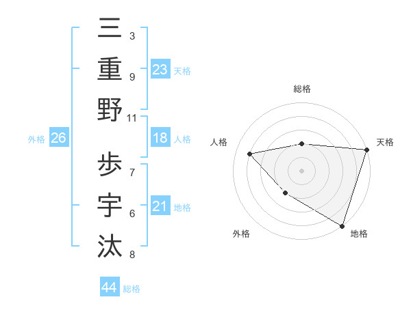 三重野 歩宇汰さんを姓名の画数から五運を鑑定