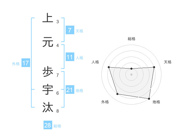 上元 歩宇汰さんを姓名の画数から五運を鑑定