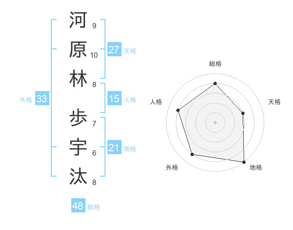 河原林 歩宇汰さんを姓名の画数から五運を鑑定