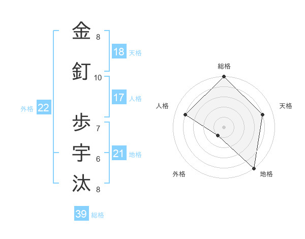金釘 歩宇汰さんを姓名の画数から五運を鑑定