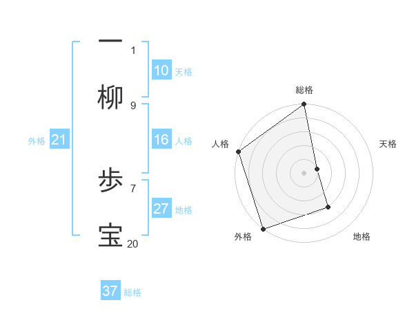 一柳 歩宝さんの総格は37画の5点!