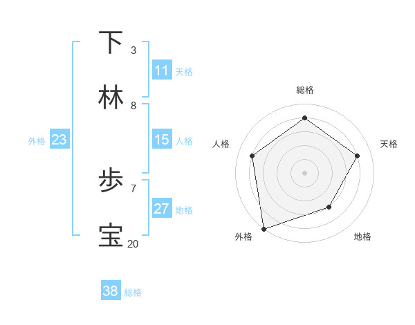下林 歩宝さんの総格は38画の4点!