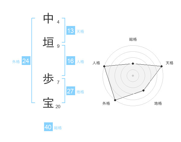 中垣 歩宝さんを姓名の画数から五運を鑑定