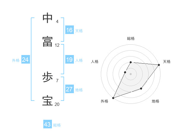 中富 歩宝さんの総格は43画の2点!