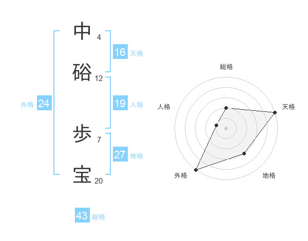 中硲 歩宝さんの外格は24画の5点!