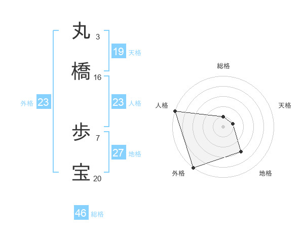 丸橋 歩宝さんを姓名の画数から五運を鑑定