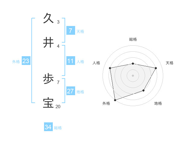 久井 歩宝さんの天格は7画の4点!