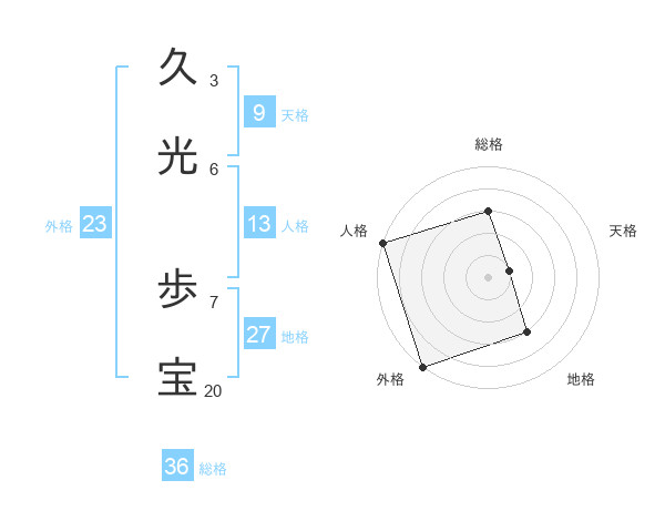 久光 歩宝さんの総格は36画の3点!