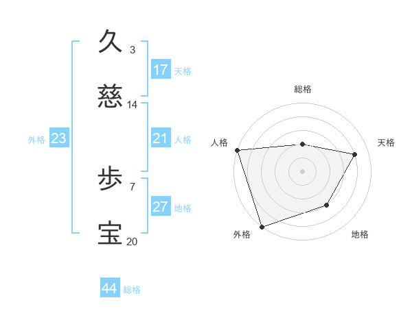 久慈 歩宝さんの総格は44画の2点!