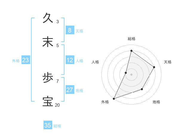 久末 歩宝さんの総格は35画の4点!