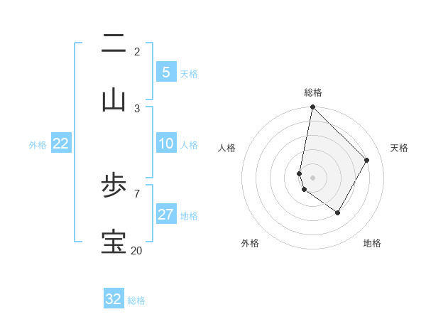 二山 歩宝さんを姓名の画数から五運を鑑定