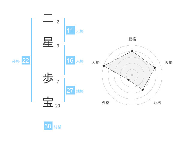 二星 歩宝さんを姓名の画数から五運を鑑定