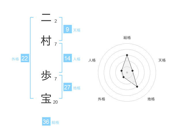 二村 歩宝さんの総格は36画の3点!