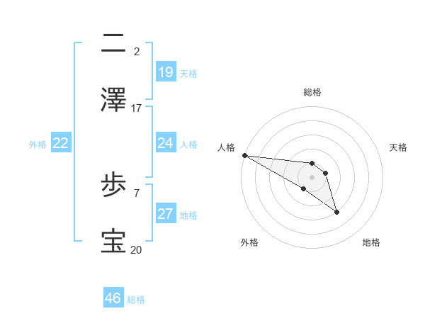 二澤 歩宝さんを姓名の画数から五運を鑑定