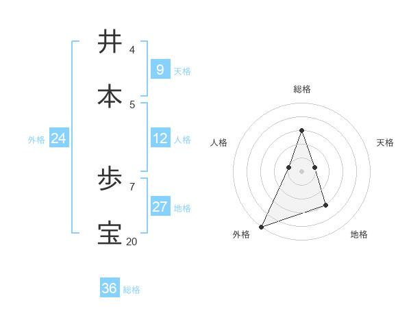 井本 歩宝さんを姓名の画数から五運を鑑定