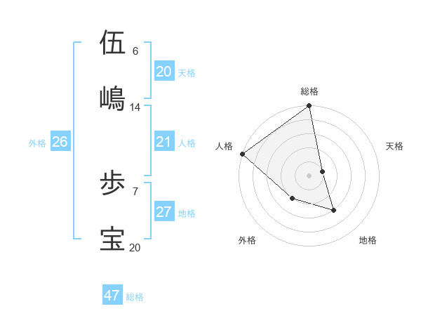 伍嶋 歩宝さんを姓名の画数から五運を鑑定