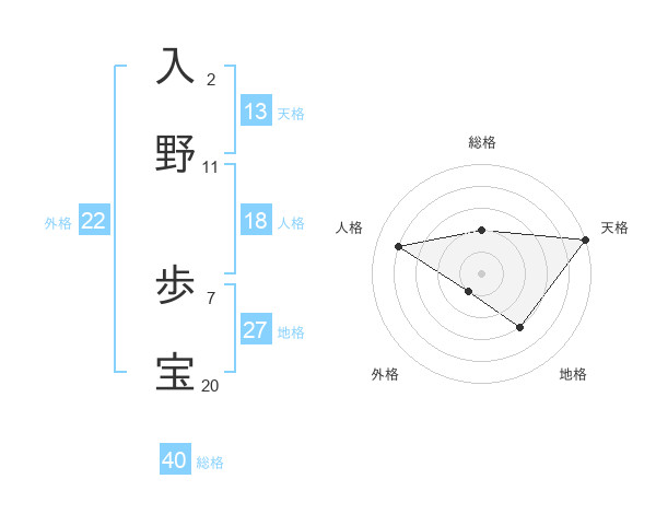 入野 歩宝さんを姓名の画数から五運を鑑定