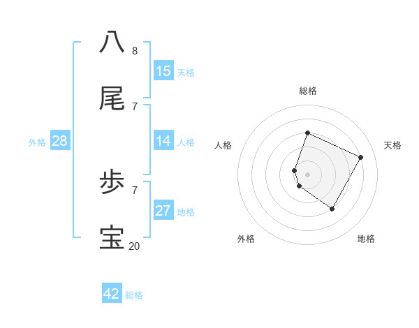 八尾 歩宝さんを姓名の画数から五運を鑑定