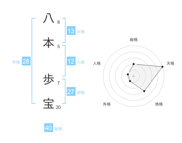 八本 歩宝さんを姓名の画数から五運を鑑定