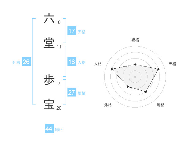 六堂 歩宝さんを姓名の画数から五運を鑑定