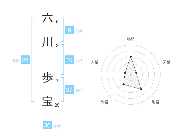 六川 歩宝さんの地格は27画の3点!