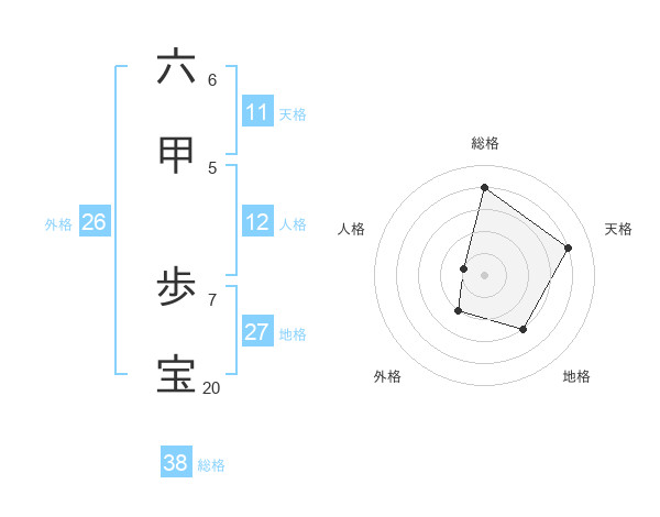 六甲 歩宝さんを姓名の画数から五運を鑑定