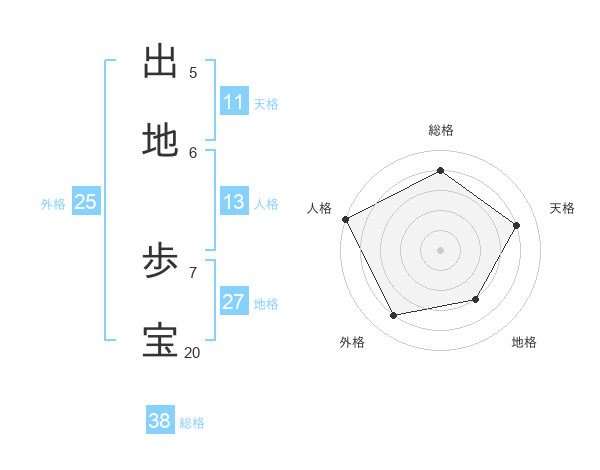 出地 歩宝さんの総格は38画の4点!