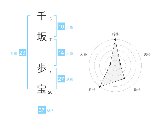 千坂 歩宝さんの総格は37画の5点!