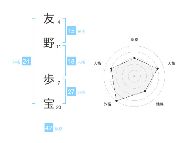 友野 歩宝さんを姓名の画数から五運を鑑定
