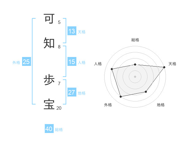 可知 歩宝さんの外格は25画の4点!