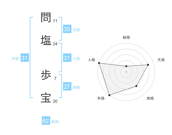 問塩 歩宝さんを姓名の画数から五運を鑑定