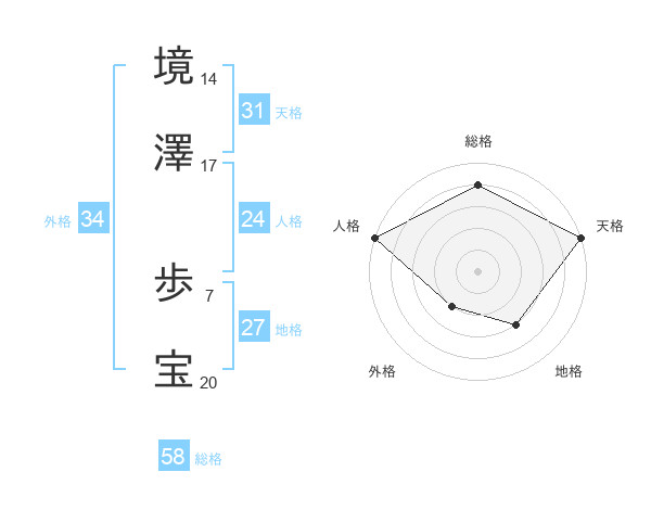 境澤 歩宝さんの総格は58画の4点!