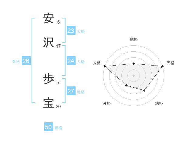 安沢 歩宝さんを姓名の画数から五運を鑑定