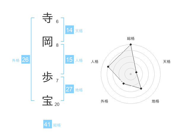寺岡 歩宝さんの総格は41画の5点!