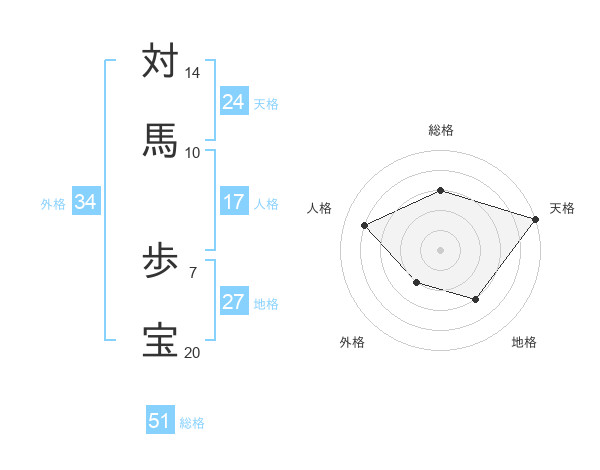 対馬 歩宝さんを姓名の画数から五運を鑑定