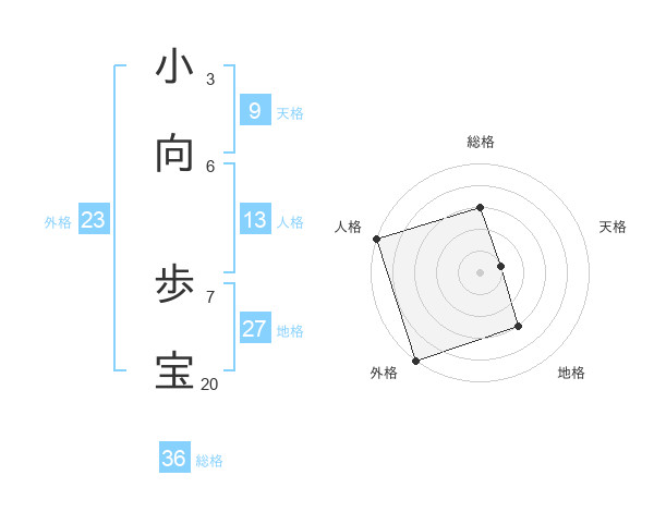 小向 歩宝さんを姓名の画数から五運を鑑定