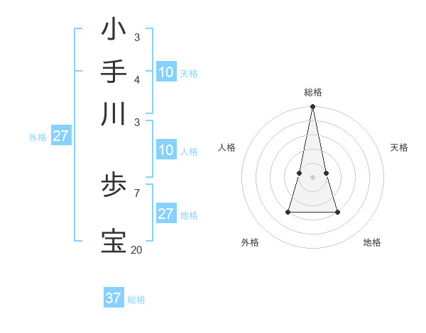 小手川 歩宝さんを姓名の画数から五運を鑑定