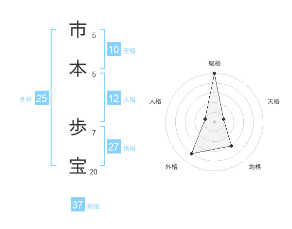 市本 歩宝さんの総格は37画の5点!