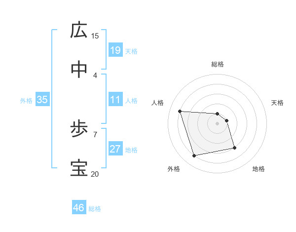 広中 歩宝さんを姓名の画数から五運を鑑定