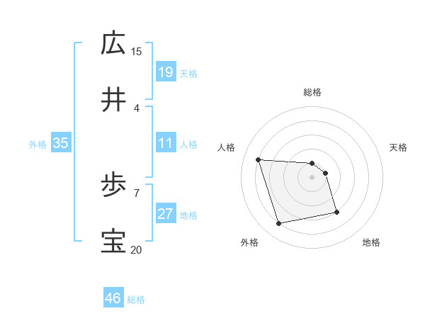 広井 歩宝さんの外格は35画の4点!