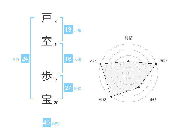 戸室 歩宝さんを姓名の画数から五運を鑑定