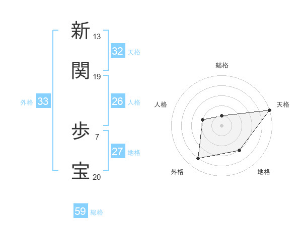 新関 歩宝さんの総格は59画の1点!